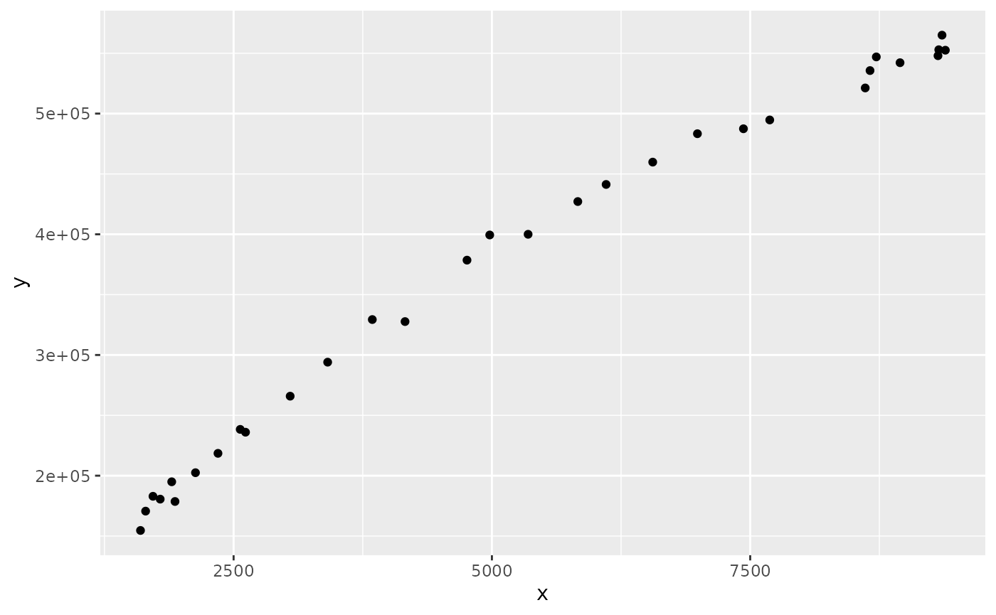 ggplot(df, aes(x = x, y = y)) + geom_point()